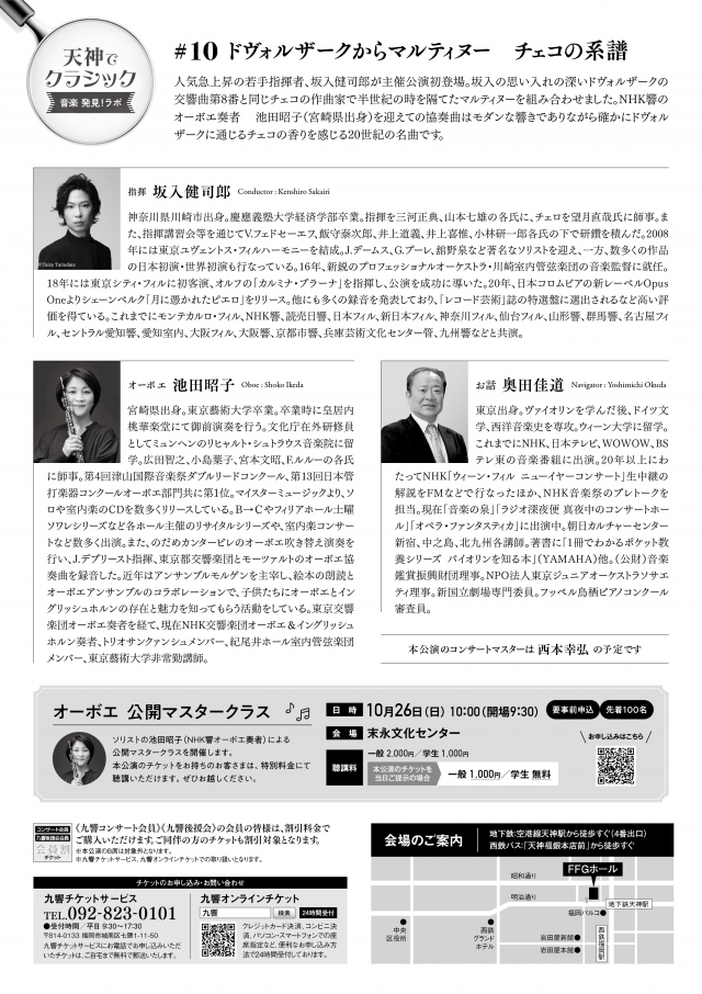 ・アクロス福岡チケットセンター(10:00~18:00 窓口/電話) TEL:092-725-9112 ・アクロスWEBチケット https://www.acrosticket.jp ・チケットぴあ(Pコード:287-537) https://t.pia.jp ・ローソンチケット(Lコード:84487) https://l-tike.com ・九響チケットサービス TEL:092-823-0101 |