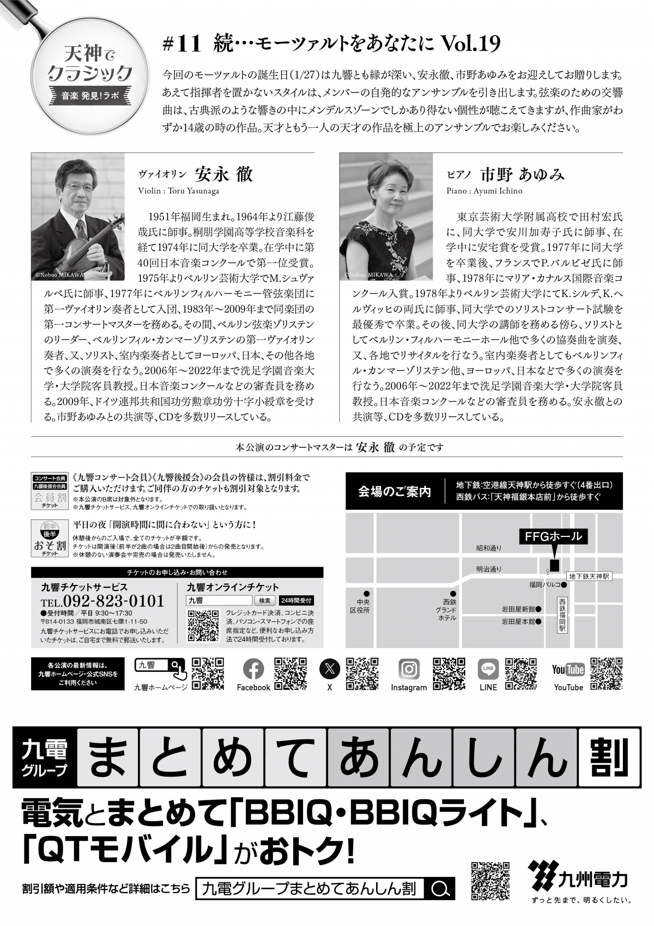 ・アクロス福岡チケットセンター(10:00~18:00 窓口/電話) TEL:092-725-9112 ・アクロスWEBチケット https://www.acrosticket.jp ・九響チケットサービス TEL:092-823-0101 ・チケットぴあ (Pコード:287-538) https://t.pia.jp ・ローソンチケット(Lコード:84487) https://l-tike.com |