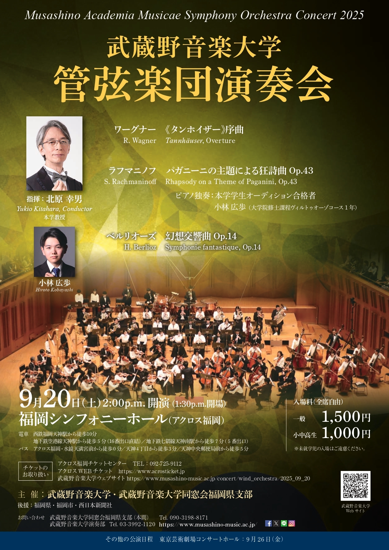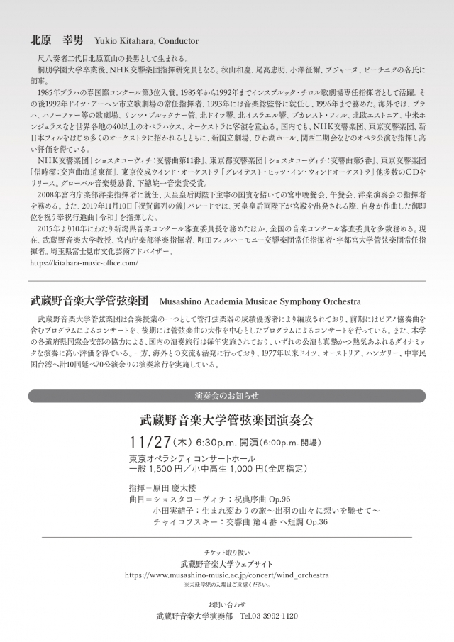 ・アクロス福岡チケットセンター TEL:092-725-9112 ・アクロスWEBチケット https://www.acrosticket.jp ・武蔵野音楽大学ウェブサイト https://www.musashino-music.ac.jp/concert/wind_orchestra/2025_09_20 |