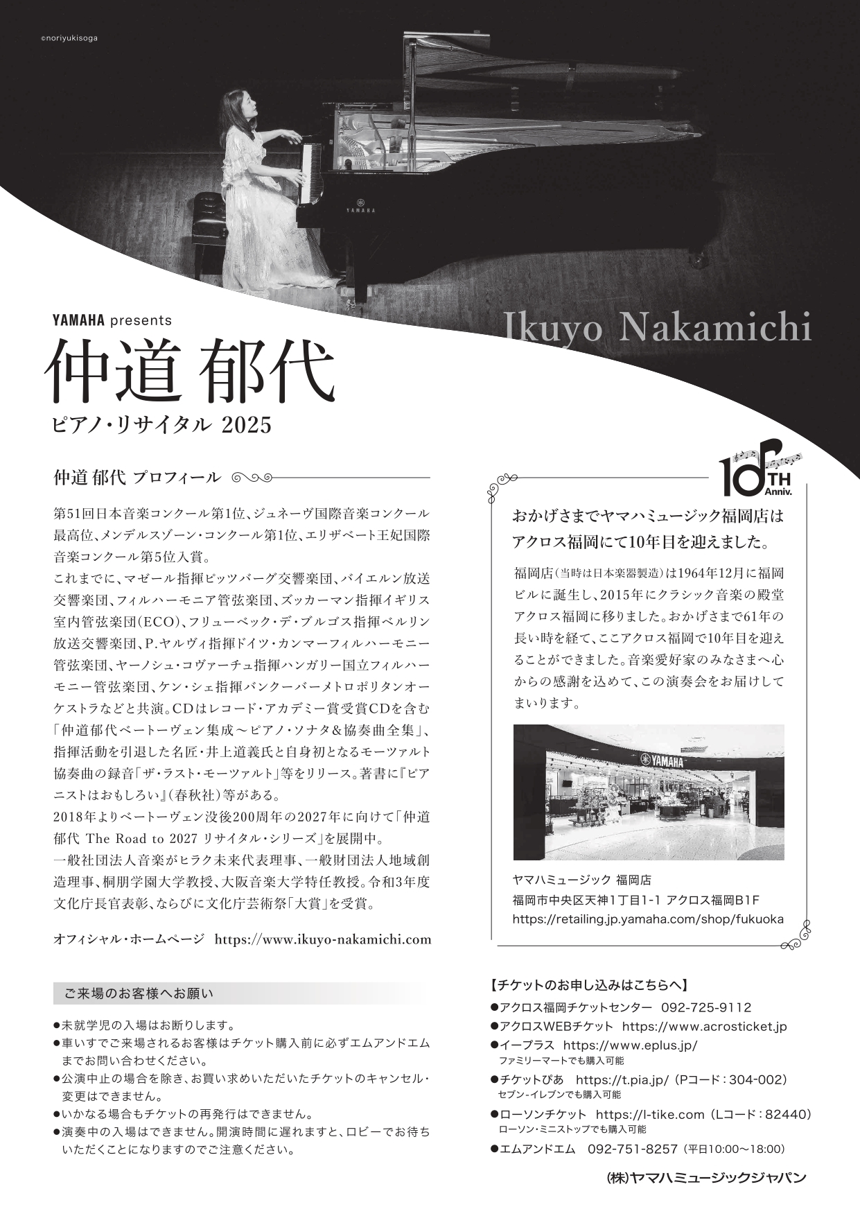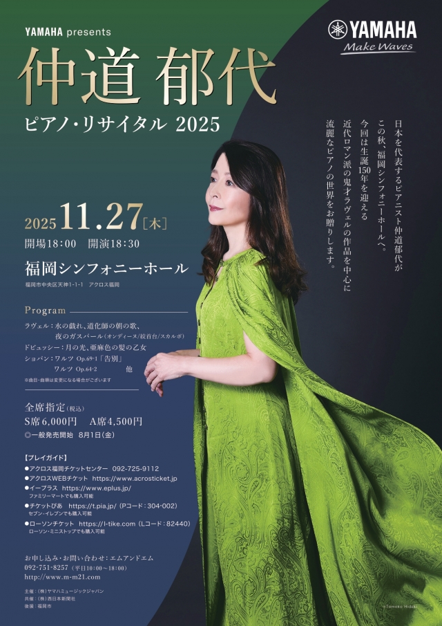 ・アクロス福岡チケットセンター TEL:092-725-9112 ・アクロスWEBチケット https://www.acrosticket.jp ・エムアンドエム TEL:092-751-8257(平日10:00~18:00) http://www.m-m21.com ・イープラス https://www.eplus.jp/ ・チケットぴあ(Pコード:304-002) https://t.pia.jp/ ・ローソンチケット(Lコード:82440) http://l-tike.com |