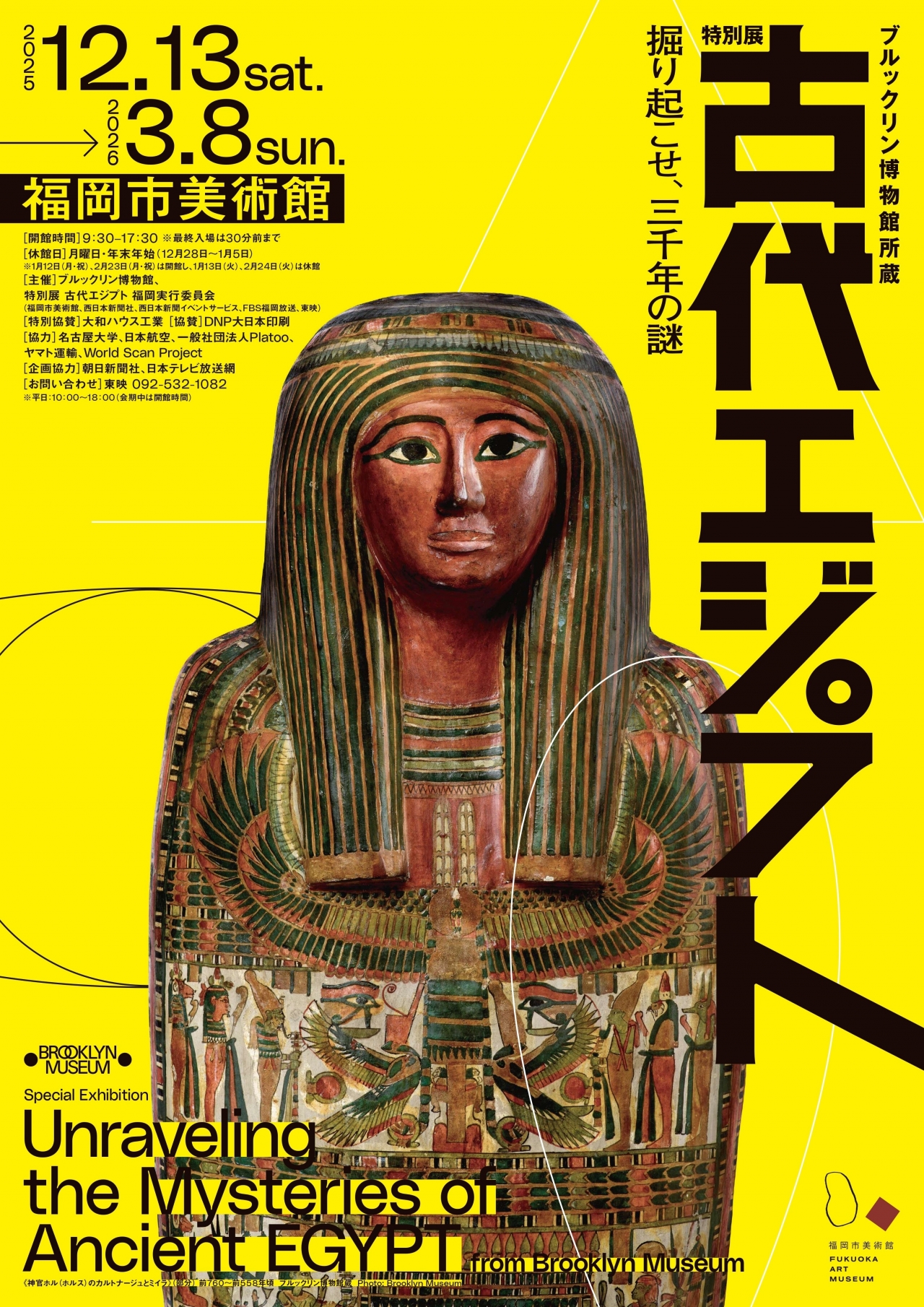 | お問い合わせ | ・東映 TEL:092-532-1082(平日:10:00~18:00(会期中は開館時間) https://egypt-brooklyn-fukuoka.com/ |