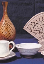 今回は、ランプシェード約30点と白をメインに約300点の器の新作を展示販売します。ランプシェードは手の込み入った透かしで、和風から洋風まで幅広く取り揃えています。優しい光を感じてください。期間中、ロクロの実演・体験も行います。