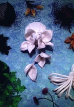 ウエディングハット、カクテルハット等、普段被ることの少ない帽子を中心に、新しい感覚の博多織も使用しての作品展。共布など、布地で作った花も散りばめ展示します。