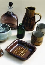 小石原焼は約350年の歴史があると言われ、全国の中でもいち早く伝統的工芸品に指定されました。大物の作品が中心に作られていましたが、昭和30年頃から飯碗や小鉢などの小さい食器が作られるようになり、最近では、和食器でも洋食に合うような現代的なデザインの食器も制作しています。今回は、太田哲三窯の長男圭が制作する伝統を守りながらも独創的な小石原焼と、琉球ガラスを学び廃瓶を利用した素直で素朴な再生ガラスの器を制作する次男潤の作品を約300点展示販売します。