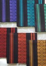 婦人用の袋帯や八寸名古屋帯、博多織のシルク生地を使用した軽くて上品なバッグや携帯ストラップなどの作品を約200点展示販売します。