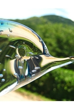 福岡県知事指定特産工芸品マルティグラスは、さまざまな色を重ね合わせて制作します。花瓶や金魚の置物などの作品を200点展示販売します。