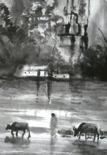 墨と水で描く水墨画は、偶然のにじみやぼかしでできる幻想的な世界が美しく、楽しく日々描いてきた風景や仏画などの作品を22点展示します。
