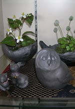 約400年もの伝統がある城島瓦(じょうじまがわら)。その土で瓦職人が遊び心で制作した寄せ植えの鉢やお皿、オブジェなどを展示販売します。
