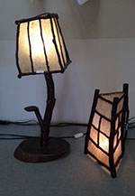 天然木の形そのものを生かして制作したスタンドや和風照明は優しい灯りで心が和みます。和紙は楮(こうぞ)の織維をあえて粗く漉き、独特の風合いを出しました。色鮮やかなトンボ玉も全てオリジナルです。ぜひ手に取ってご覧ください。
