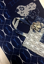 田中絣工房で制作した絣を使った着物、洋服、小物などを展示販売します。昔ながらの絣柄や創作絣など、若い方から年配の方まで喜んでいただけるような作品づくりを心掛けています。藍の色と手織りの風合いをお楽しみください。