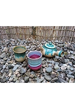 上野焼は薄づくりで多彩な釉薬(緑青釉、鉄釉、灰釉など)が特徴です。今回はゆっくりとお茶を楽しむための器を多数そろえました。伝統技法に現代風のデザインをプラスした作品をぜひご覧ください。