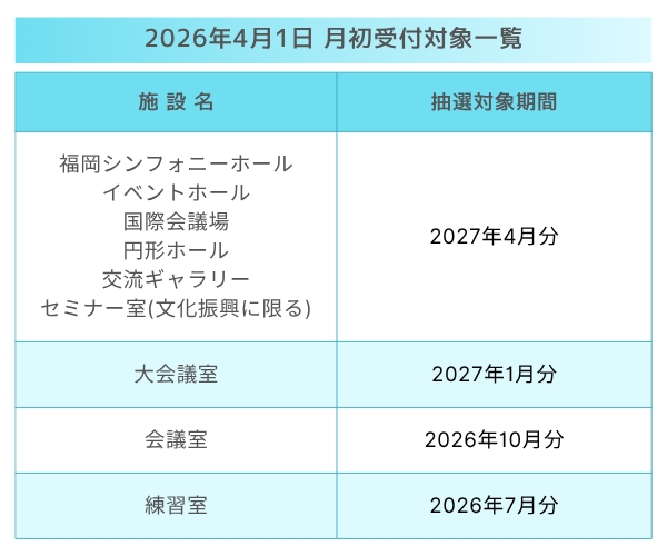 2026年4月1日(水)に月初受付(抽選会)を行います。