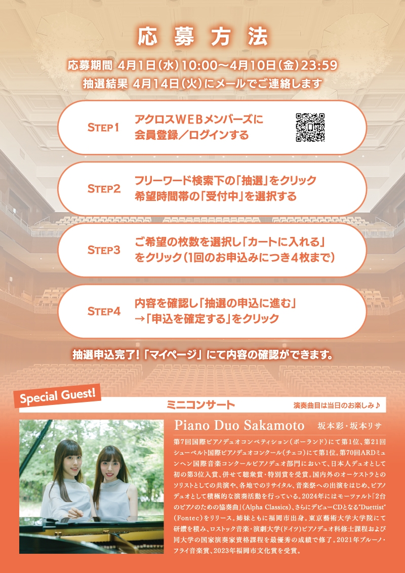 アクロスWEBチケットのサイトよりお申込みください。