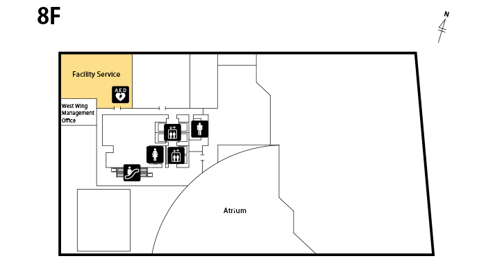 The floor map shows the location of ACROS Fukuoka’s facilities, including halls, conference rooms as well as information counters and restrooms.