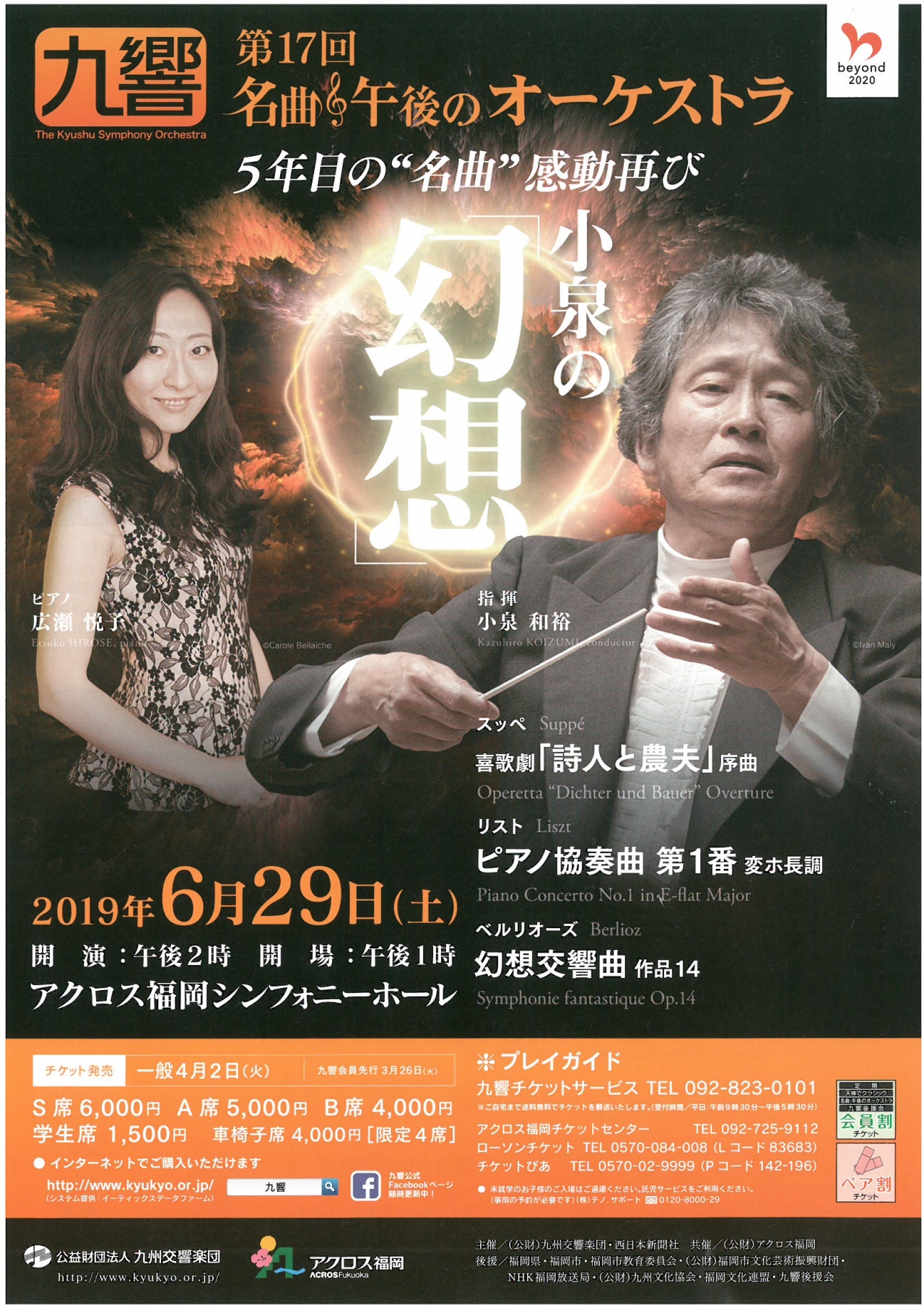 アクロス福岡チケットセンター TEL:092-725-9112 九響チケットサービス TEL:092-823-0101(平日9:30~17:30) |