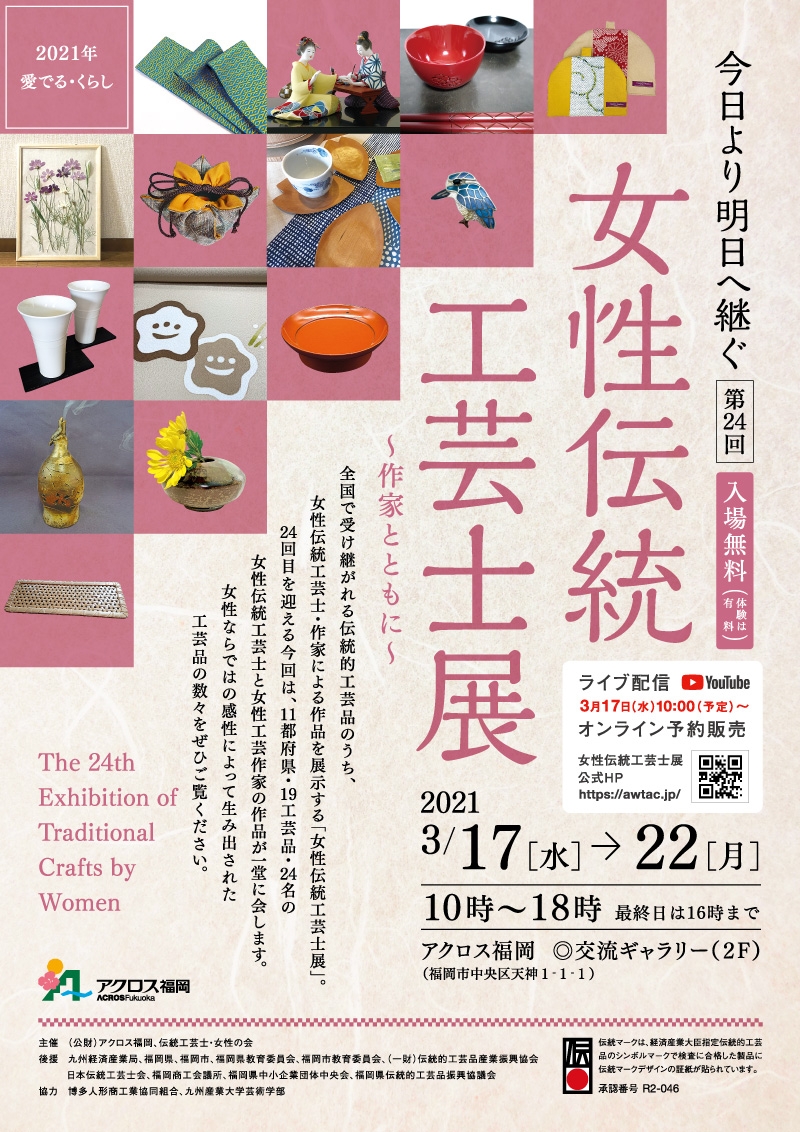全国で受け継がれる伝統的工芸品のうち、女性伝統工芸士・作家による作品を展示する「女性伝統工芸士展」。24回目を迎える今年は、「2021年・愛でる・くらし」をテーマに11都府県から19工芸品24名の作品が一堂に会します。女性の作り手ならではの感性によって生み出された工芸品の数々をぜひご覧ください。今回はご自宅でもお楽しみいただけるよう、YouTubeでライブ配信いたします。