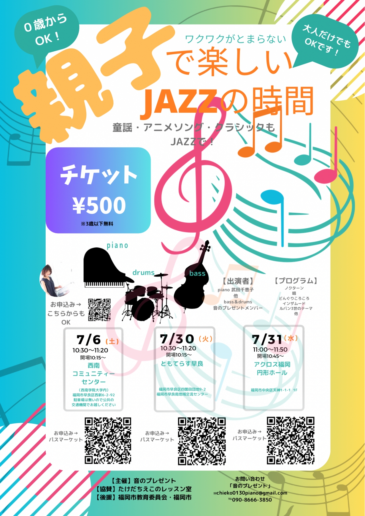 ちびっこが大好きな曲!パパママが大好きな曲!誰でも聴いた事のあるクラシックの曲!童謡だってJAZZのリズムにのせてお贈りします。0歳からOK!泣き声、騒ぎ声、歩き回ってもOK!気楽に楽しんでいただける時間です。もちろん大人だけでもOK!