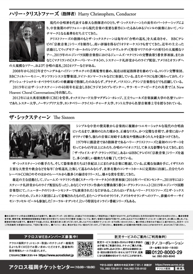 ※主催公演に限り、公演当日もアクロスWEBチケットで購入できます。(クレジット決済限定・なくなり次第終了)