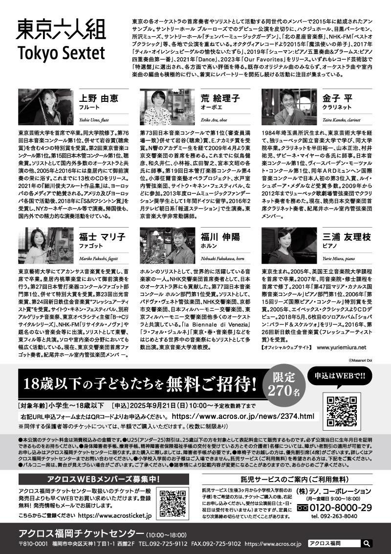 ●車椅子でお越しの方は、優先割引席(4席)がございます。詳しくはアクロス福岡チケットセンターまでお問い合わせください。