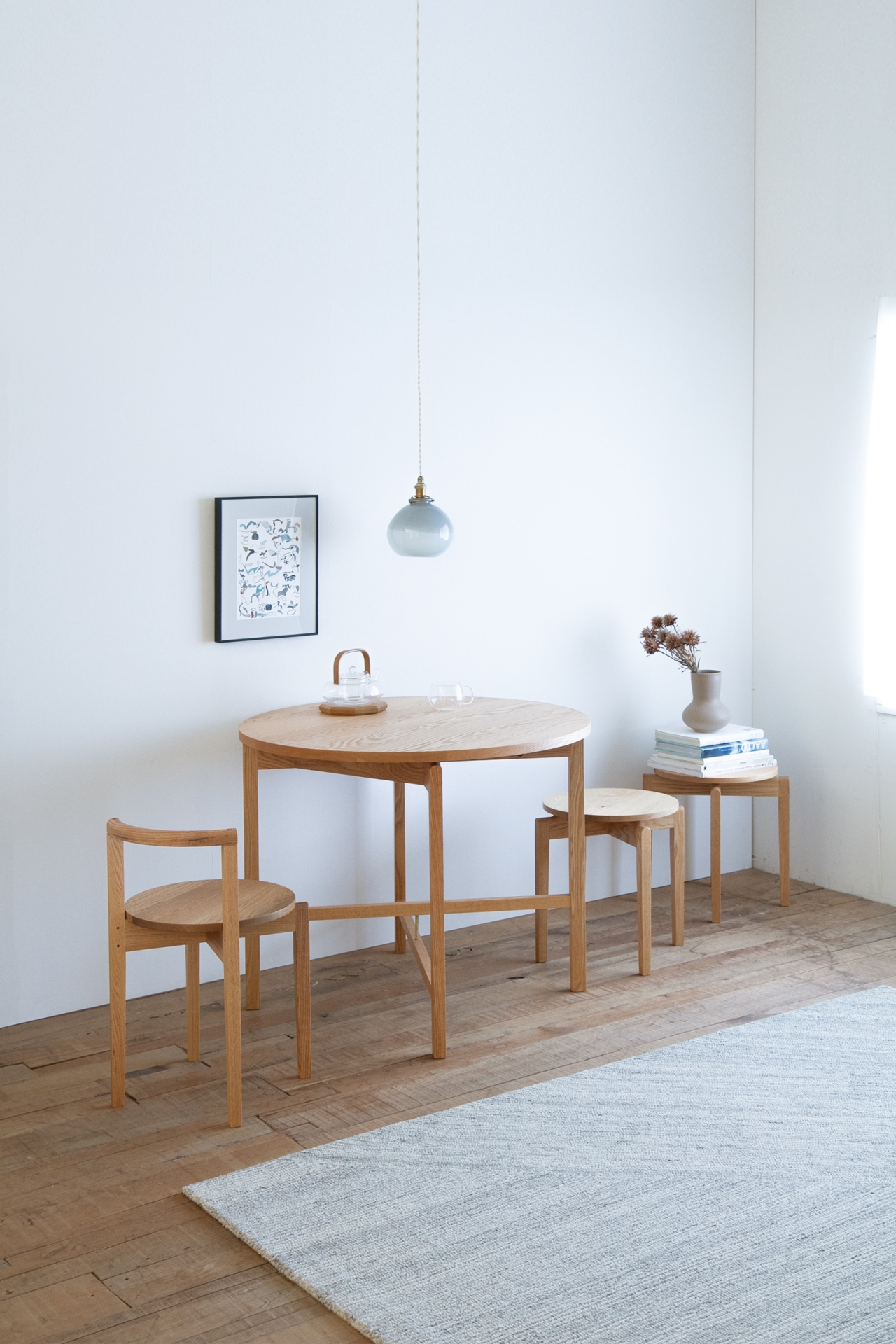 さらに、円卓や楕円、引き出し付など、形の異なるダイニングテーブルも複数展示し、食卓空間をイメージしながらコーディネートをご覧いただけます。