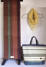 伝統技法を頑なに守り、手織りにこだわって織り上げた名古屋帯は美しさの中に力強さがあります。他にも帯生地を使用したバッグやストールなどさまざまな作品を展示販売します。