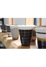 小石原焼の伝統を受け継ぎながら、若者らしい感性をプラスした斬新な作品作りを心掛けています。以前に比べると色もカラフルになり、薄く軽くなりました。和食洋食を問わず使える食器は普段の生活にとてもよく馴染みます。(約300点展示)