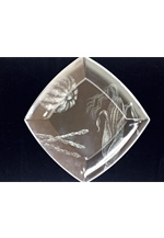 手彫りガラスを眺めて楽しめるように、壁に飾りたい絵を描いて、額や鏡などに彫りました。また、ガラス皿を額に入れて壁に飾るための工夫もしてみました。花や野菜、季節のものを彫った作品25点を展示します。