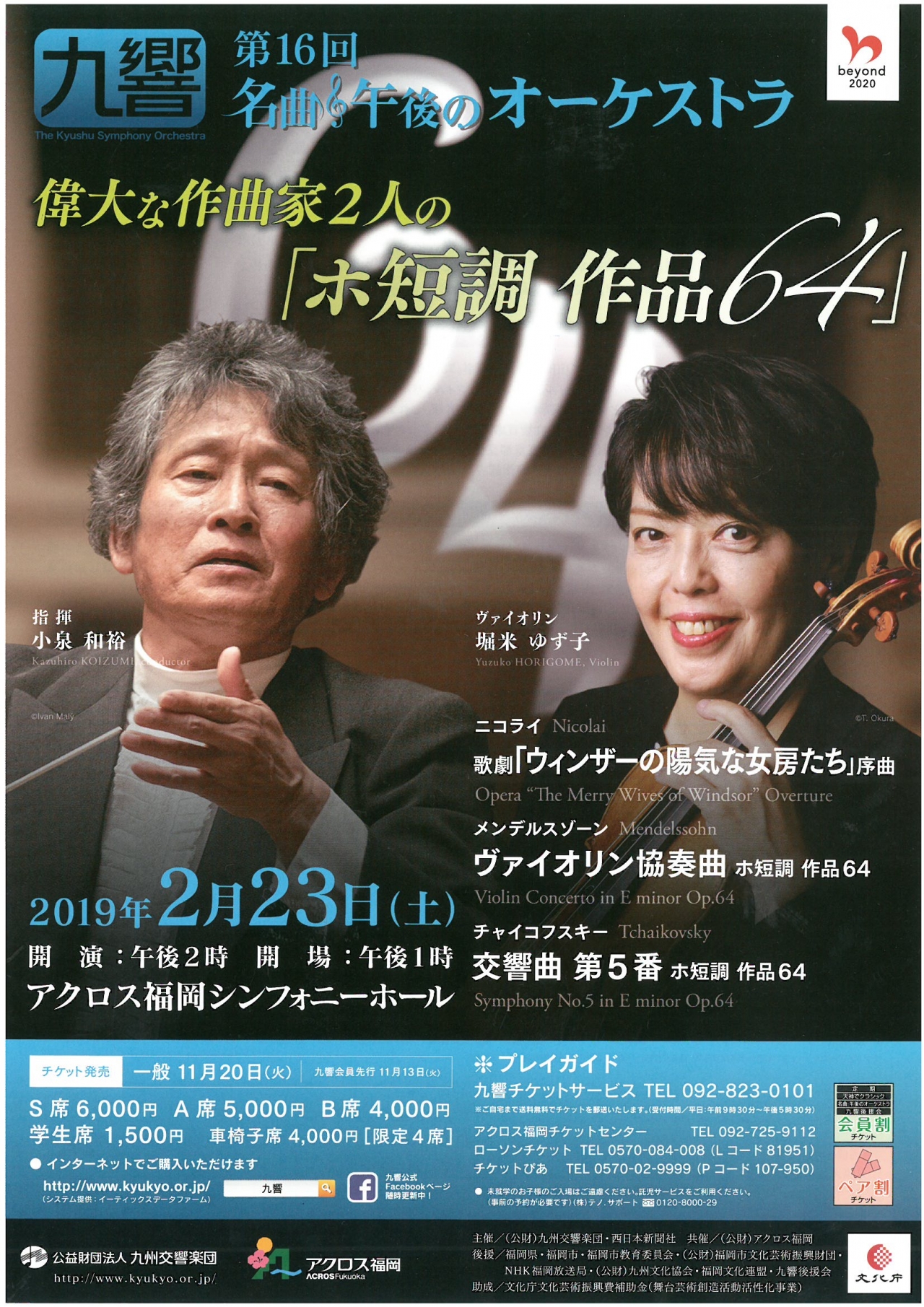 | お問い合わせ | 九響チケットサービス TEL:092-823-0101(平日9:30~17:30) http://www.kyukyo.or.jp/ |