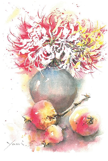 季節の花をモチーフに、教室で描いたものや旅のスケッチをもとに描いたものなど、約40点の作品を展示します。メンバー同士のなごやかな雰囲気から生まれる優しい色合いをお楽しみください。