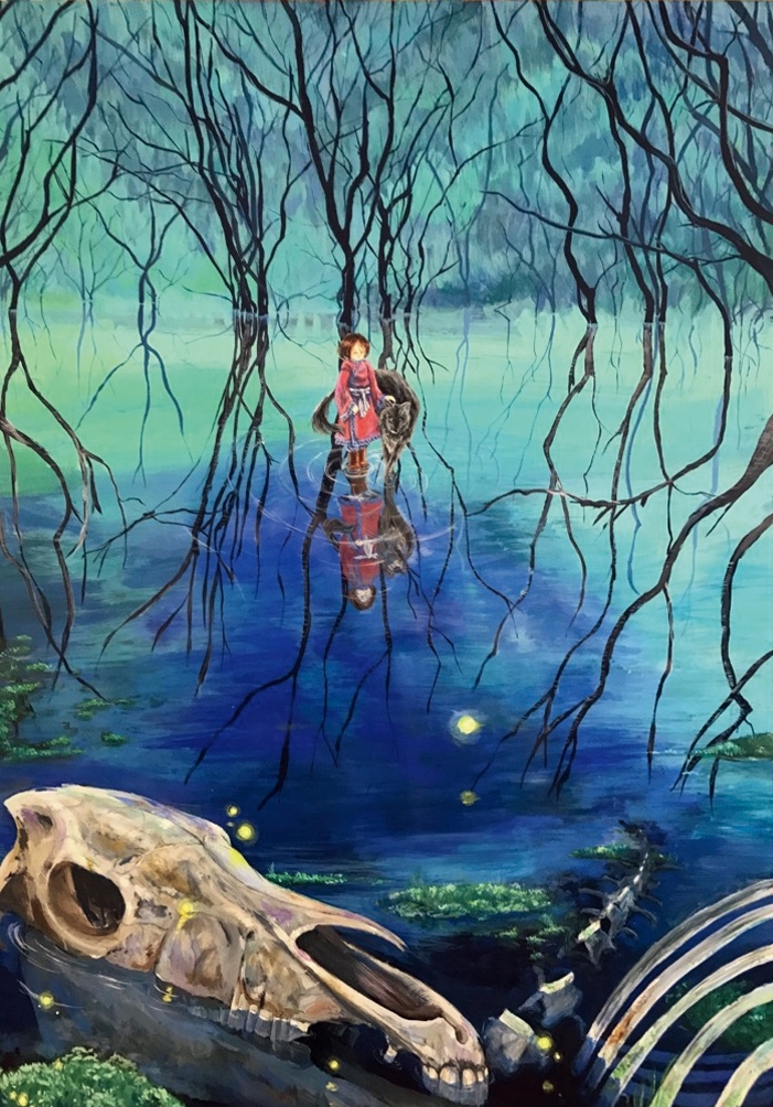 書道部は今年の干支である「戌」をテーマにした面白い作品を、美術部はそれぞれの個性が表れた作品を展示します。(15点展示)