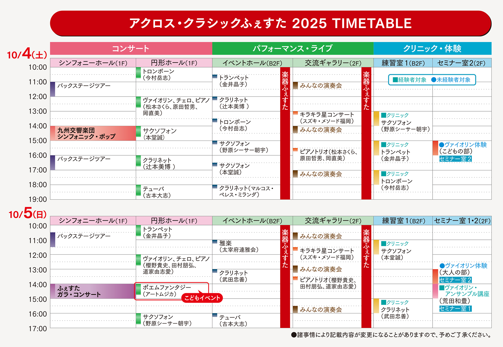 | 17:00 | トロンボーン | [講師] 今村岳志 |